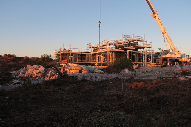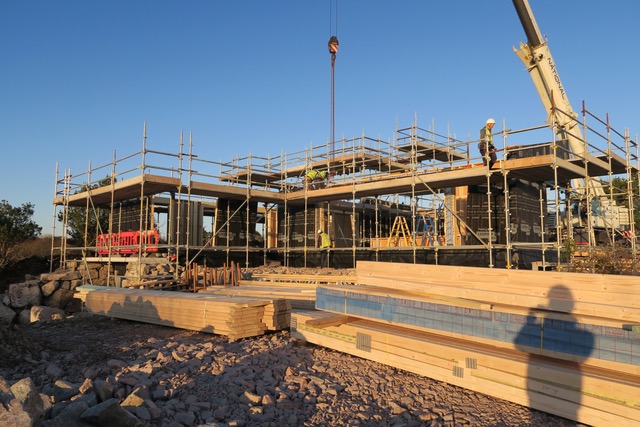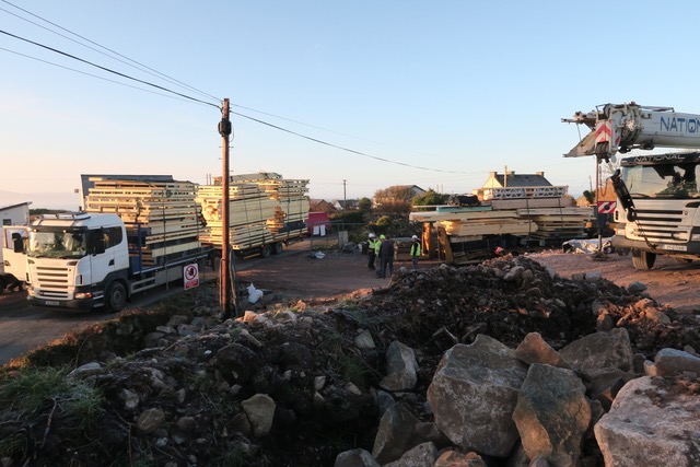 My stomach was sick with excitement on the first morning of the timber frame assembly. If I was a child again, I guess it would have been the ultimate Christmas morning without the reindeers and Santy. Irish Eco Homes brought our presents on trailers and trucks. It felt like one of the best days of my life, like a wedding or childbirth without the pain and fuss of the latter.