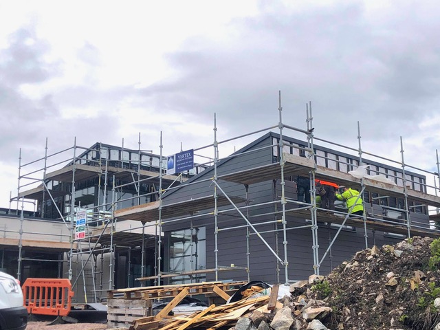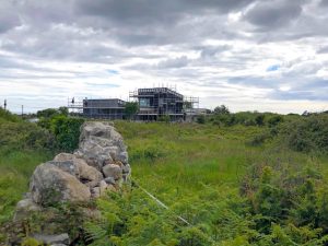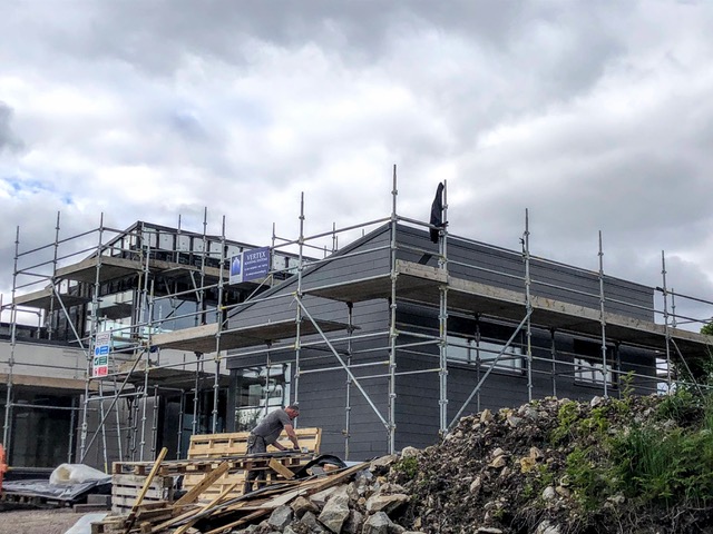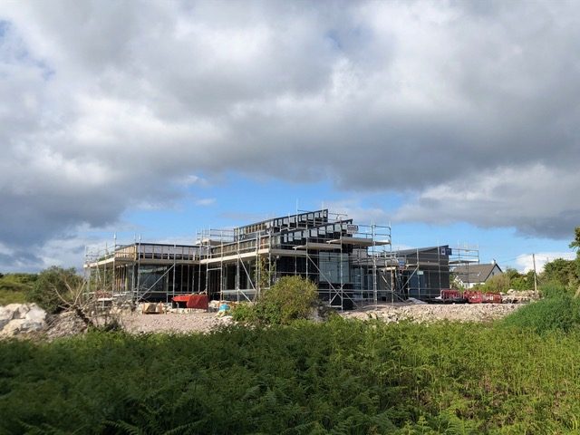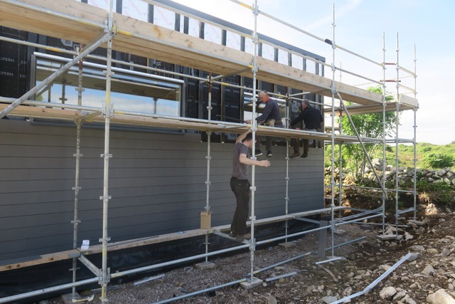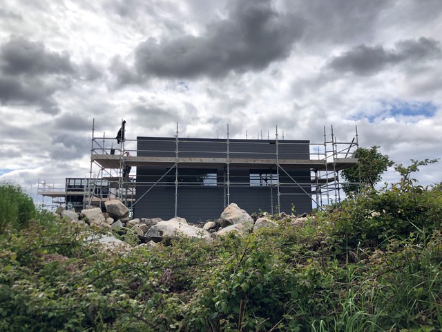 We are cladding the sloped parts of the house in Cedral Click cladding, we chose a smooth finish in Pewter, I’m very happy with the colour and how it sits in the landscape amongst the rocks and under the grey leaden skies. It’s great to see the first finished part of the building other than the windows and roof. The neighbours have been commenting that they really like the colour, so that’s good sign. It’s all positive feedback so far, with one passer by saying, ‘If I do my house again, I’ll get Gemma to do it’. This rugged modernist building is beginning to look like a finish line is possible.