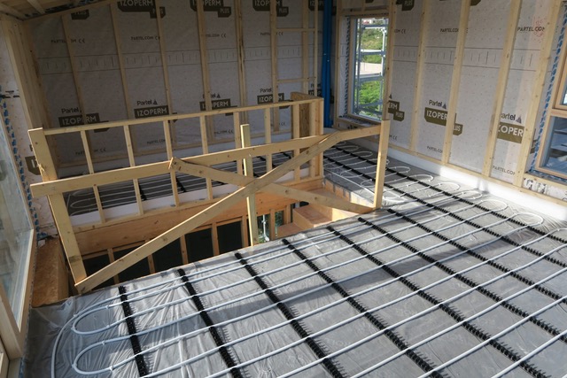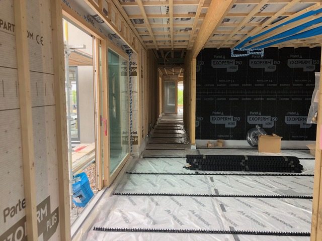 It’s hard to imagine the need for heating during the current heatwave, but the ‘winter is coming’ as they say. Our underfloor heating piping was installed last month. It will be powered by an air to water heat pump. This was the best option for our site, while using a renewable heat source.