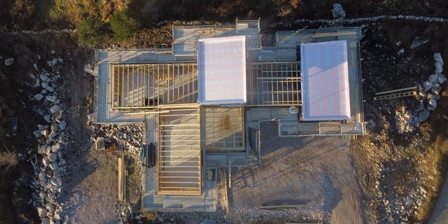 We now have rooms with a roof. Although the wall panels are trusses are made offsite, the trusses, decks, gutters and parapet need to be assembled and crafted onsite. Great care was taken by Irish ecohomes to get all the details right, from the falls in the gutter to the slope in the parapet, to …