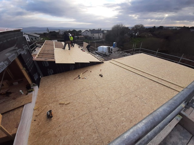 There is always some challenge where weather may work against the job, but you just grit your teeth and hope you can get through to the next stage and then you breathe a sigh of relief, when you get to site and you see the work is done. This is a good feeling. The roof is such a key part of the build, especially in the west of Ireland and 1km from the sea. We are moving in the right direction in building a strong defence to the elements, not only does a roof need to look beautiful, it needs to work exceptionally hard.
