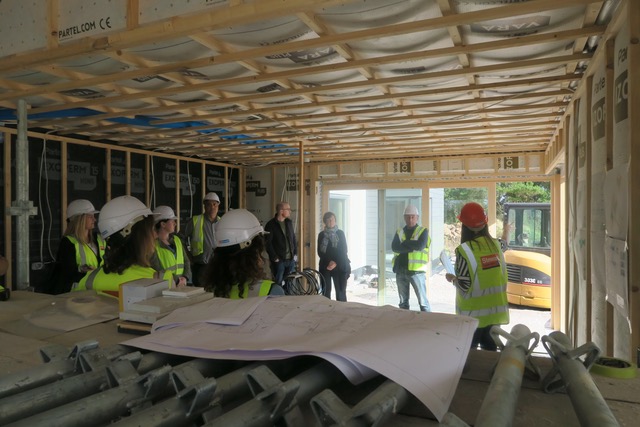 I started off by walking everyone around the site to view the house from different angles, to show how the form had been inspired from the slanting trees and massive boulders in the fields and how it changed as you move around the site. We were lucky we had a sunny day, so we could take our time, without running for cover.