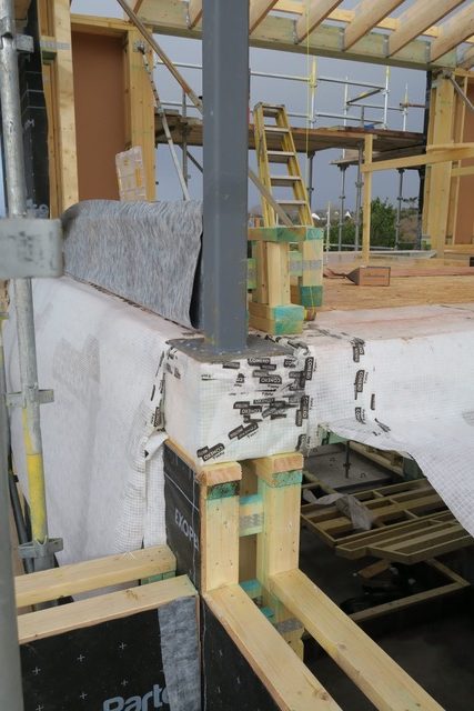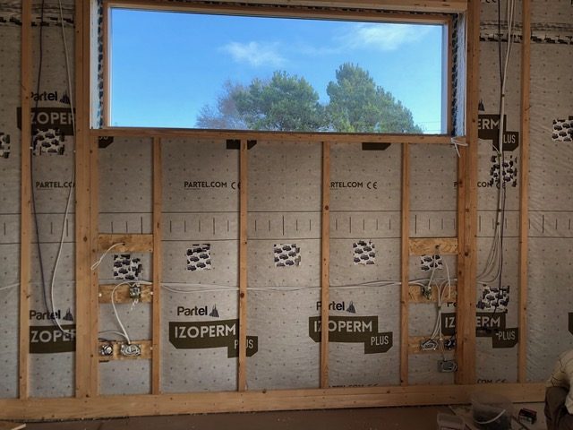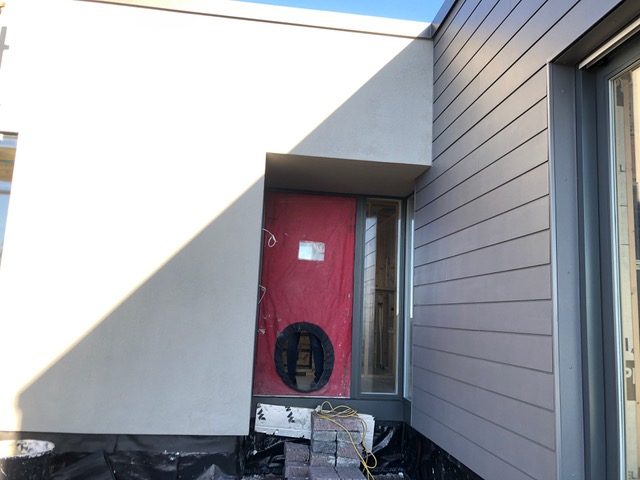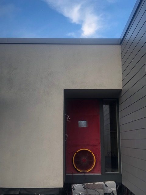 The test is conducted by attaching a fan to the front door, the house is pressurised and depressurised to calculate the air flow, then divided by the volume of the house. During the test, the assessor goes around each room of the house looking for leaks, this will be felt with any drafts around windows or openings. It’s important to do this test before the walls are sealed up with, so any leaks can be rectified.