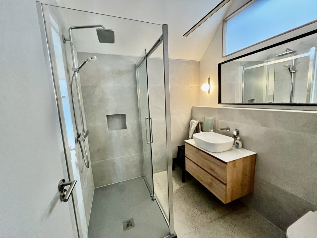I wanted our bathroom to be a retreat, a little sanctuary in a busy family home. This small room delivers volumes of light, nature and calm. It’s private, yet connected to the elements, a perfect lookout to the stars and moon from the ‘sky’ window. The high ceilings also help the bathroom feel more spacious with the high window bringing in gorgeous east light that allows the room glow in the morning.