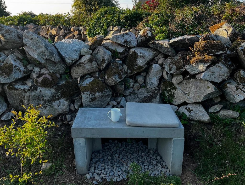 We’ve also built a concrete bench in the garden, it’s a prototype for our stove hearth for our living room, there has definitely been some learning on formwork and polishing that we can use for the real thing. The prototype is now a pleasant permanent fixture in the garden.
